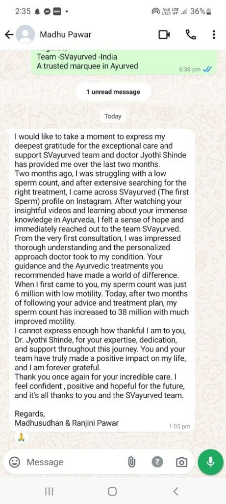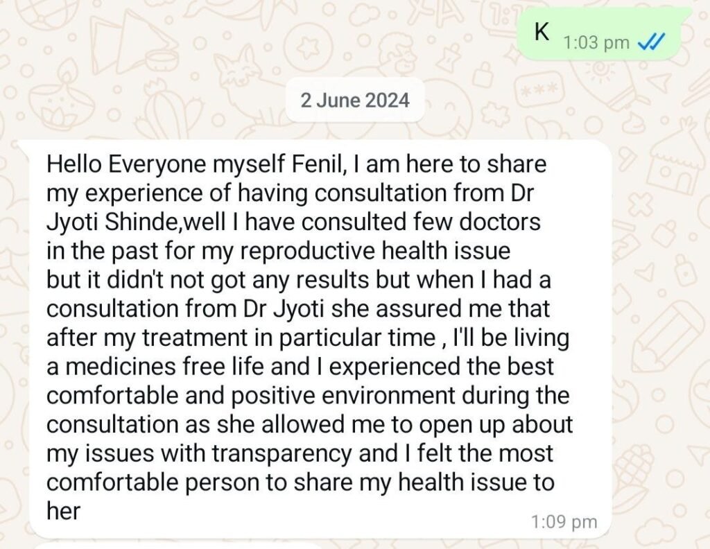 Over the years, Dr. Jyoti has helped hundreds of men overcome challenges like azoospermia, oligospermia, low motility, and chromosomal abnormalities. Her patients have gone from feeling defeated to celebrating healthy semen reports, natural conception, and the joy of fatherhood.